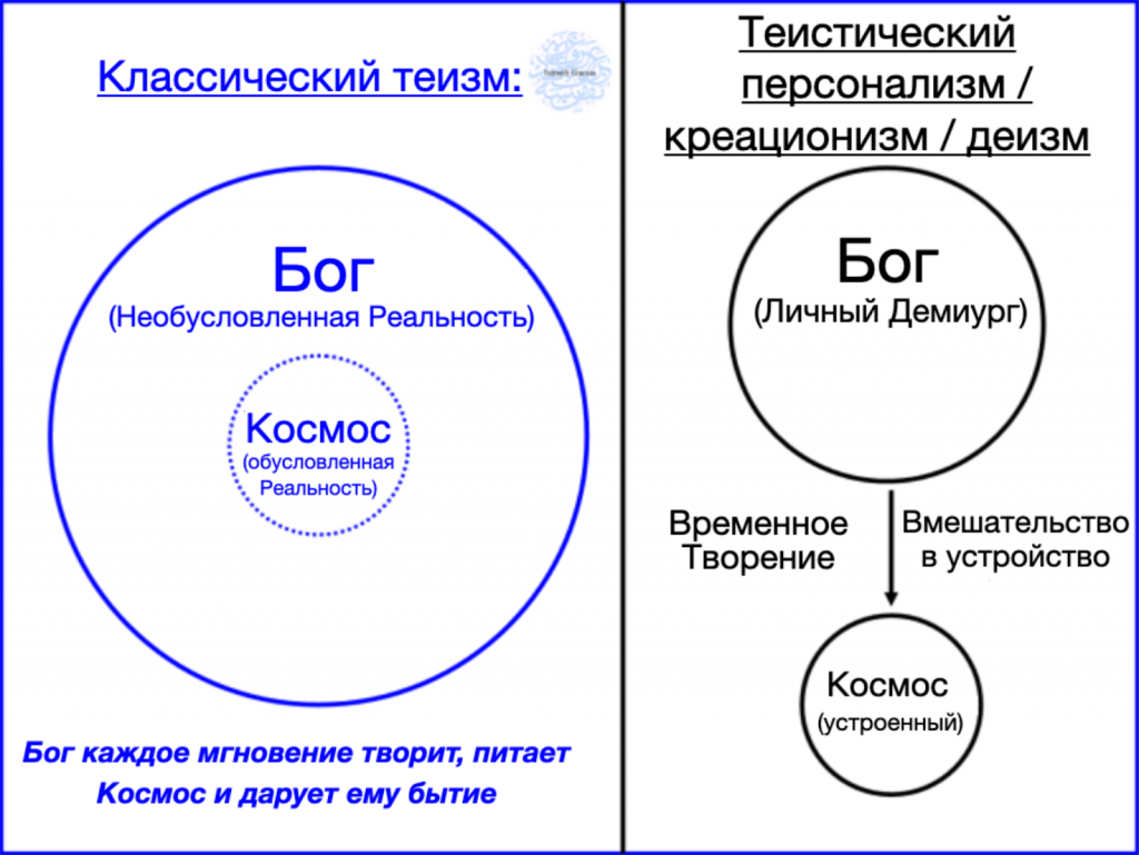 Еще одна привлекательная для современников идея в этой области – деизм, то есть представление о том, что Бог создал Вселенную, а затем позволил ей существовать самостоятельно. Эта философия активно распространилась в восемнадцатом и девятнадцатом веках. Но такая концепция Бога представляет Его бессильным и приравнивает бытие Бога к бытию Вселенной. Если Вселенная может существовать без какого-либо участия или связи с Богом, который её создает, то такая Вселенная также является богом, и фактически утверждается существование двух богов. Но в действительности, существование Вселенной является полностью производным и зависимым от акта дарования бытия Богом. Это не означает, что Бог только вызывает Большой Взрыв; это означает, что каждое состояние Вселенной во времени (в каждый момент её существования) получает свое бытие благодаря творческой силе Бога. Имам очень ясно выразил эту идею в статье, опубликованной в британских газетах: